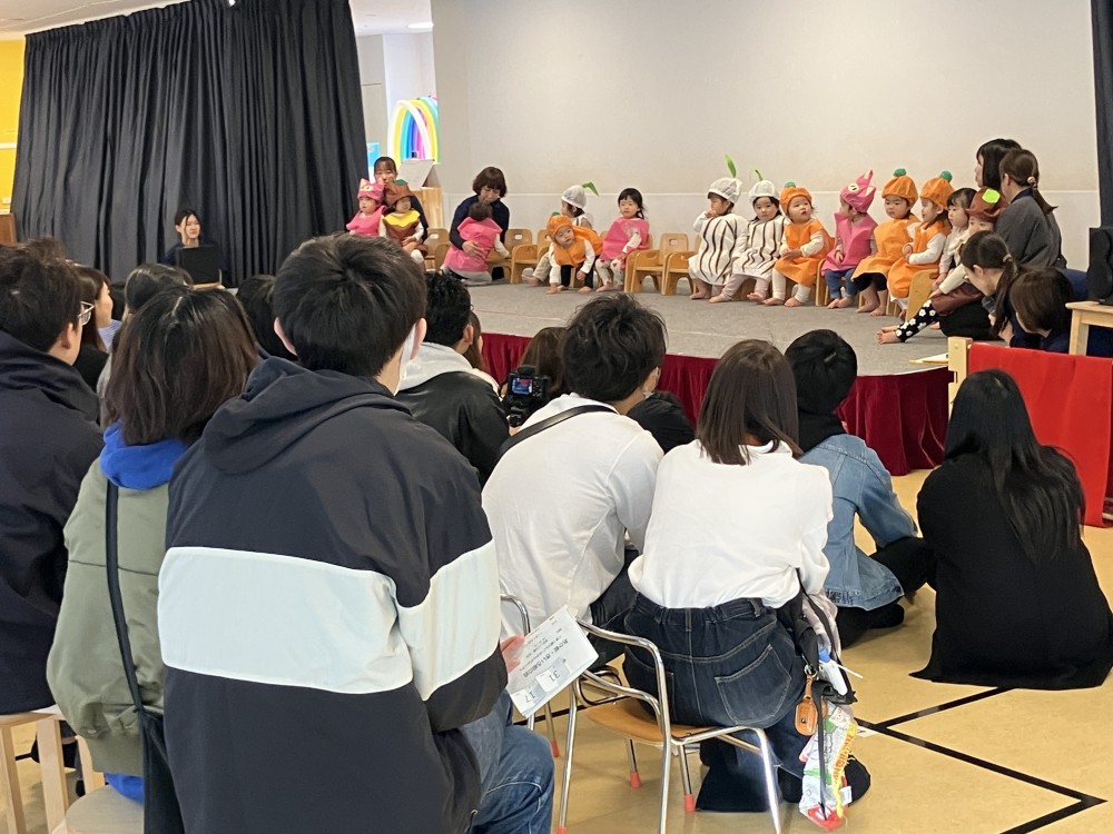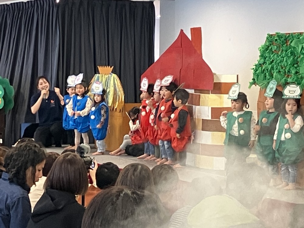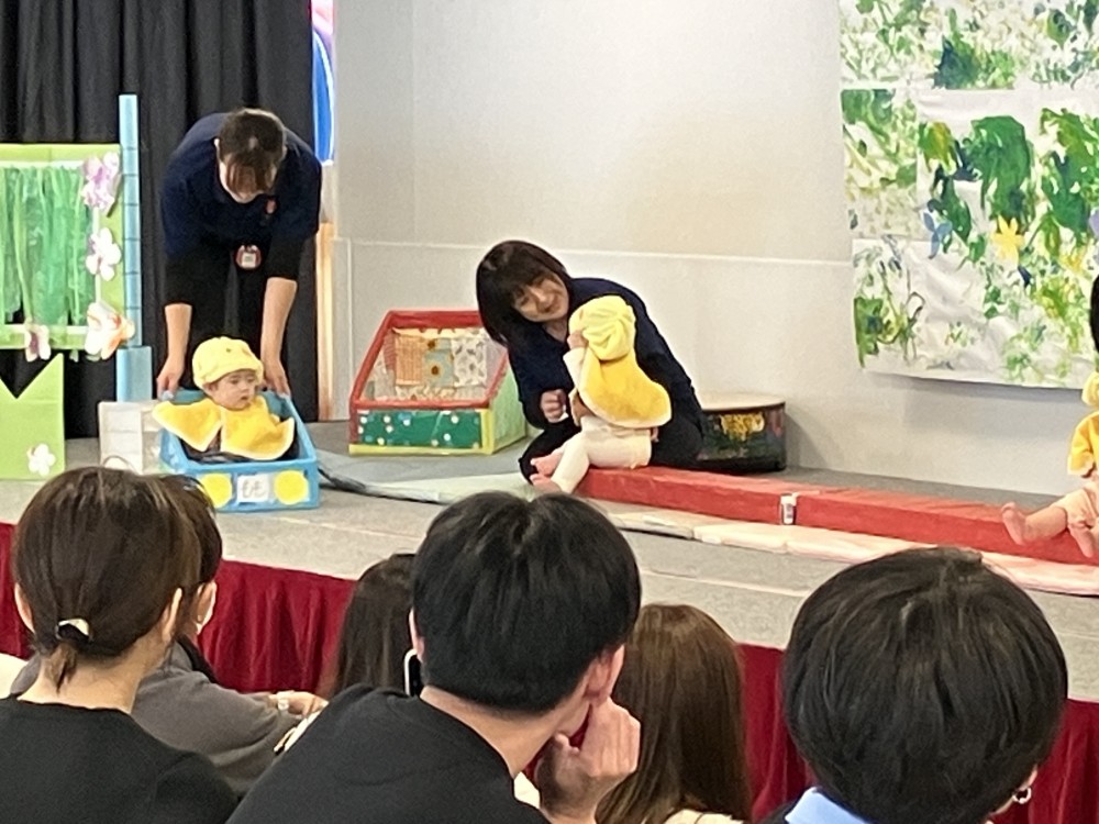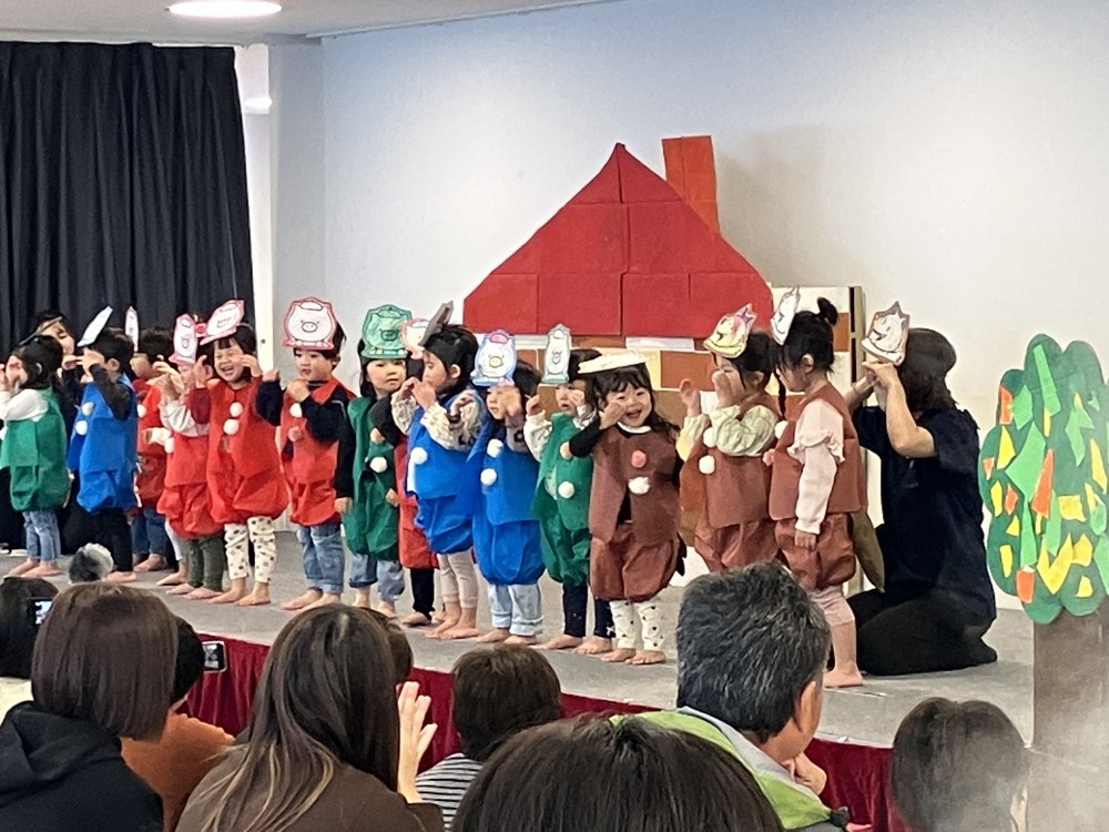 子ども達が興味を持っている事柄や手遊び・歌などを元に先生達が構成し、日頃の保育の中で楽しみ、それをお披露目する会です。