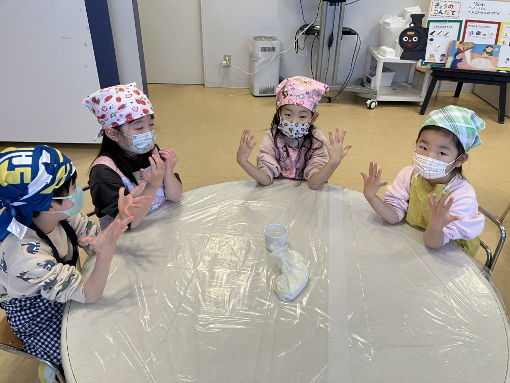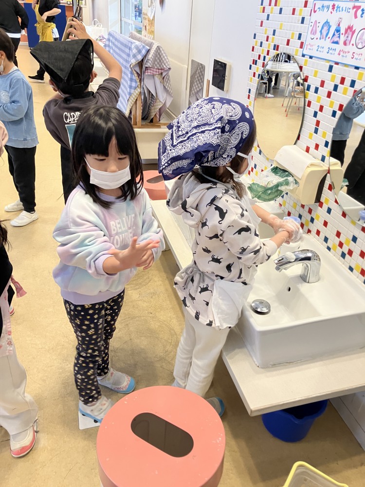 食中毒には要注意!もうその大切さもわかっているので、しっかり手洗いをします。手洗いをした後はどこにも触らないで〜・・