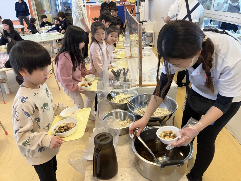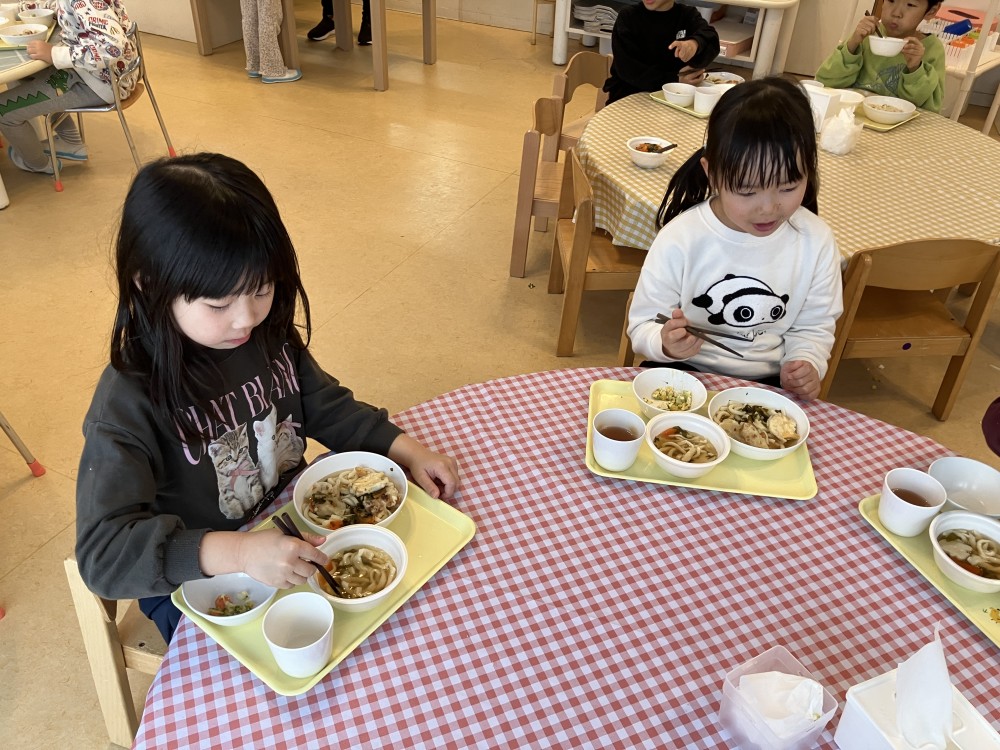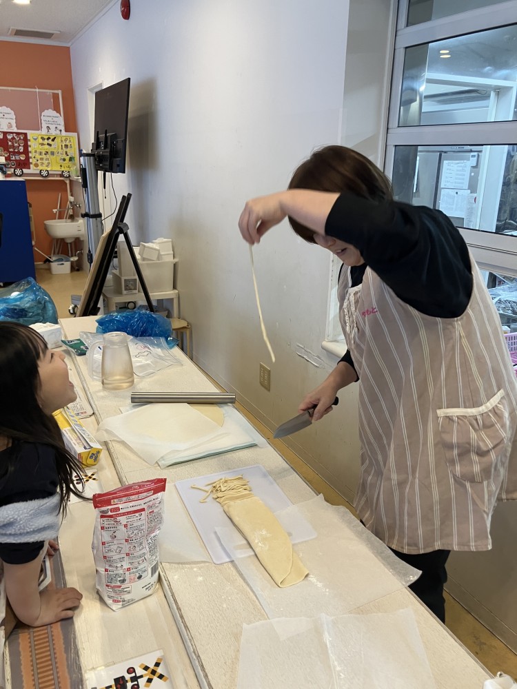 「このうどん(自分達の作った物)の方が美味しい〜!」と口々に叫ぶ子ども達。本当にコシがあって市販の茹でうどんとは違う美味しさがありました。