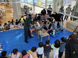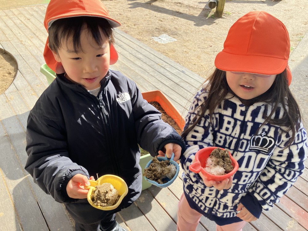 食べ終えて園庭で遊んでいた4歳児さんがいいものを作ってくれました!