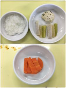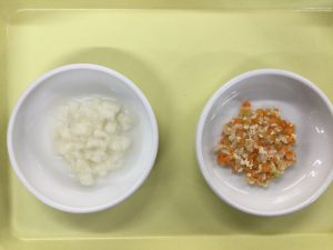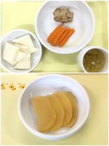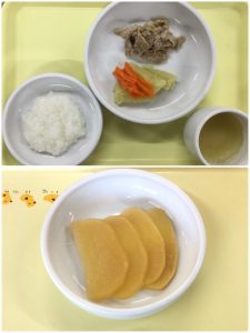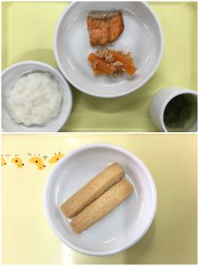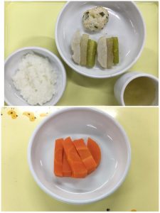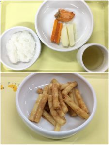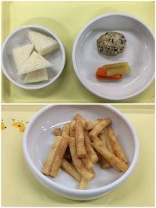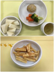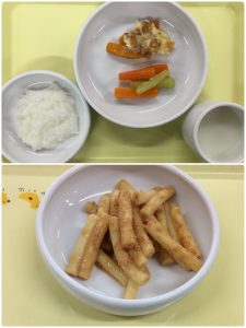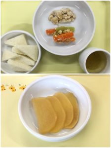 認知こども園和光では、5人のキッチンスタッフが210名の園児、45名の職員のおやつ、ランチを野々市市から提供される毎月の献立・カロリー表に従い、材料から手作りしています。仕入先は次の会社です。