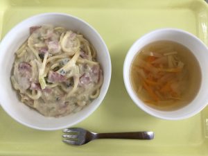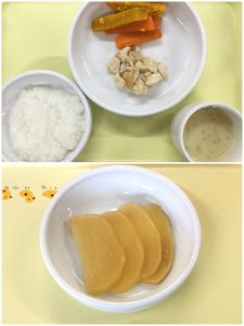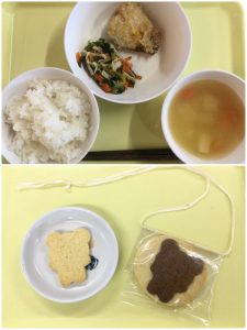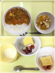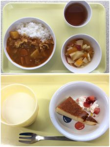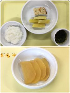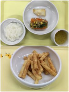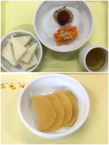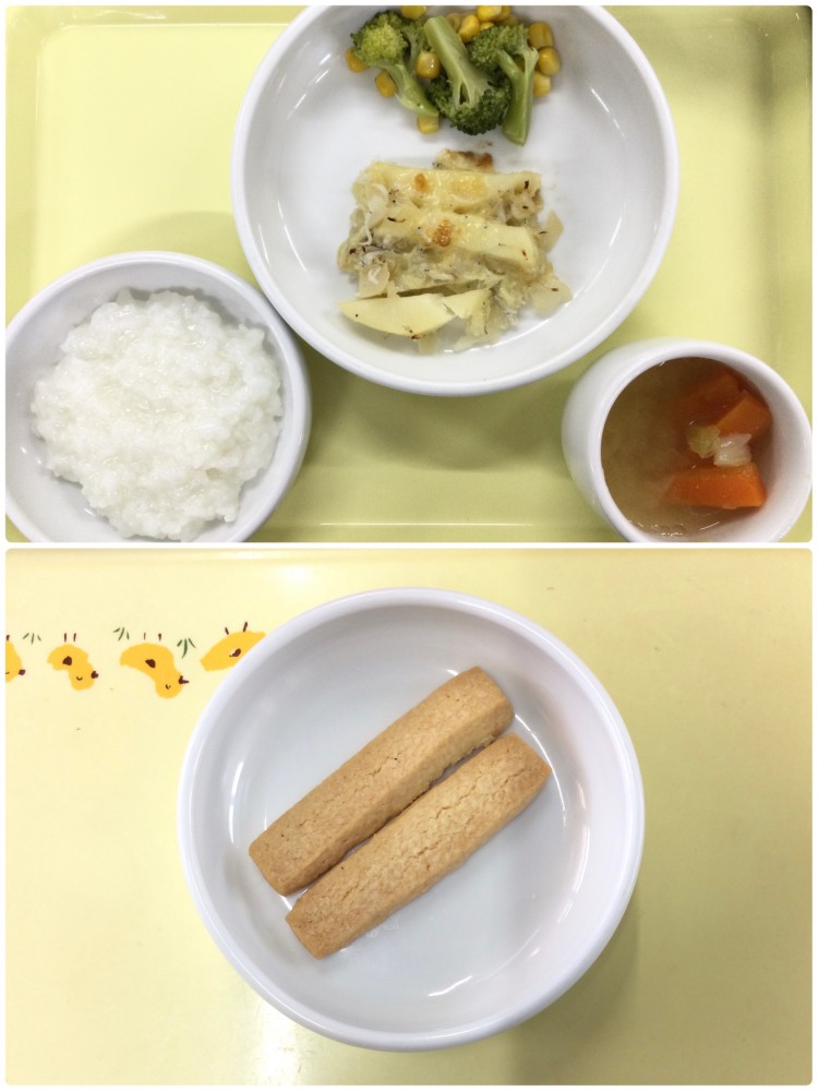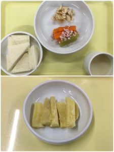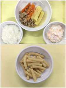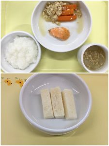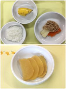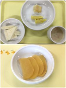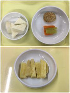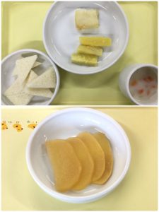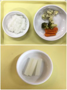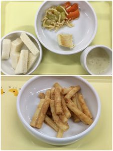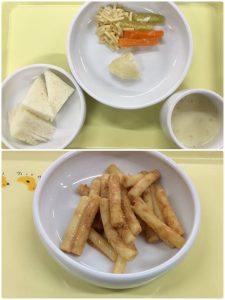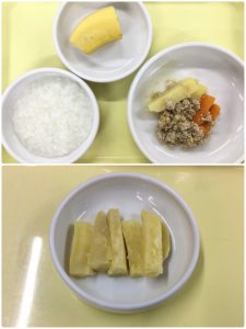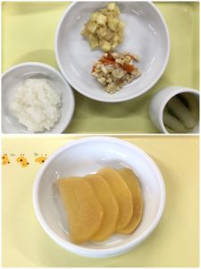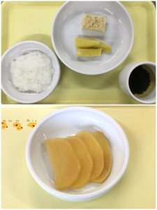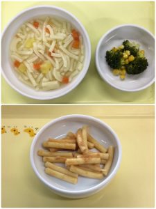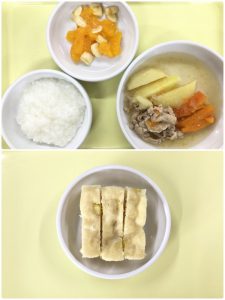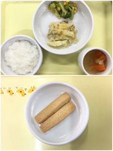 認知こども園和光では、5人のキッチンスタッフが210名の園児、45名の職員のおやつ、ランチを野々市市から提供される毎月の献立・カロリー表に従い、材料から手作りしています。仕入先は次の会社です。