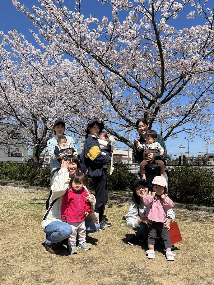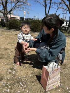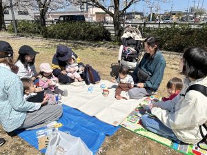 公園では春を感じながら、シートを広げて皆さんでちょっと休憩。穏やかな時間が流れていた様子。
