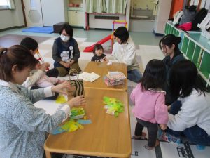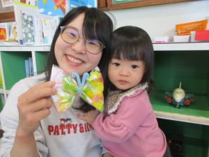 センターに戻ってから、桜の花びらを入れて、ちょうちょをつくりました。